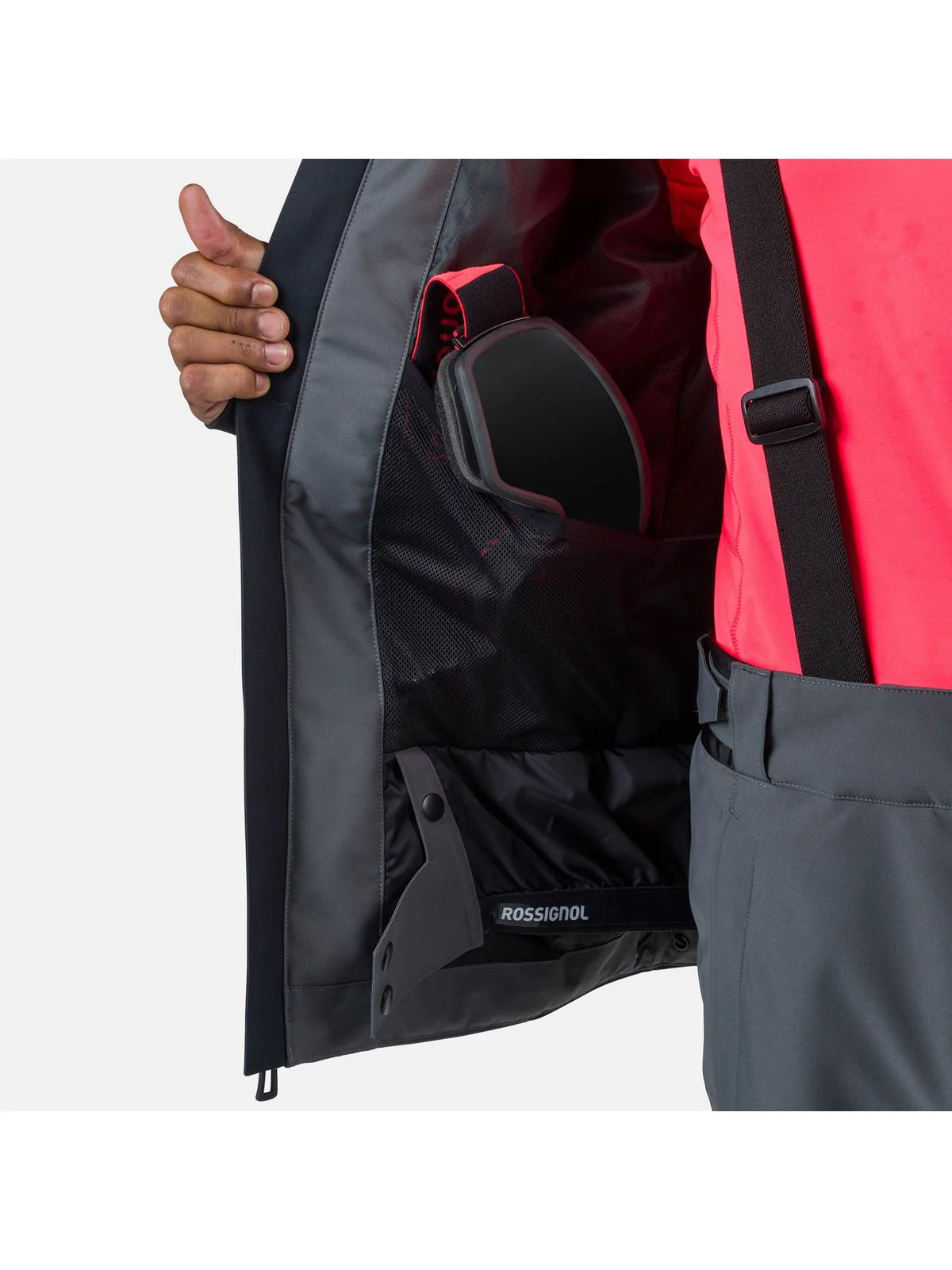 - Funkcjonalne detale: wbudowany pas przeciwśnieżny, zamki wentylacyjne, kaptur kompatybilny z kaskiem, wbudowana ściereczka do gogli i specjalna kieszeń na karnet